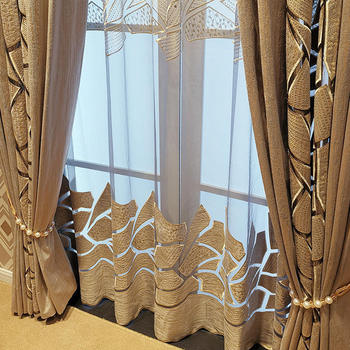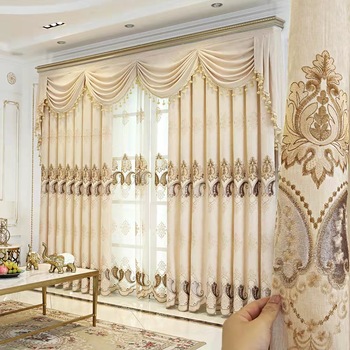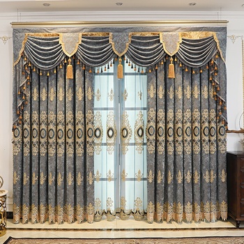 Rideaux occultants brodés avec cantonnière attrayante Tissus de rideaux transparents de luxe européens pour salon